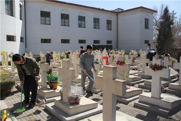 近日(3月21日),清明节即将到来之际,我院修士们在院长韩文生神父、常务副院长师惠敏神父和总务主任郭四廷神父的带领下前往西北旺“天主教北京教区陵园”祭奠长眠于此的主教、神父、修女和众位信友们,并尽我们的绵薄之力怀着感恩和尊敬的心把骨灰堂的里里外外彻底打扫了一遍。