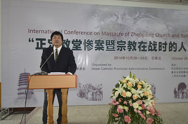 由河北师范大学历史文化学院、信德文化研究所、复旦大学宗教与国际关系研究中心联合举办的“正定教堂惨案暨宗教在战时的人道主义救助”学术研讨会,在石家庄隆重召开了!会议的召开,是学术界与宗教界的一件盛事!我谨代表河北师范大学,向大会致以热烈的祝贺。各位代表在百忙之中,怀抱繁荣学术的美好愿望汇聚一堂,并将在这次学术盛会上呈献研究所得。为此向各位与会代表表示崇高的敬意!