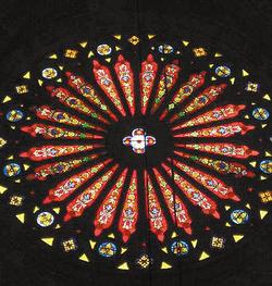 我们稍为仔细观察,就可以看到新旧彩色玻璃同时镶嵌在玫瑰窗的石框里,浑然成为一体。当阳光照射在这些玻璃窗时,随着太阳的移动,不断变动的艳丽的光线照射在教堂里,就像一幅移动的彩图,重现当年的风貌,使人产生不断的遐想。所以,有人称这些玫瑰窗为上帝的眼睛,也有人称之为“天使之眼”。