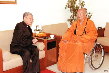 1月29日下午,回到高雄四维文教院,枢机给我泡上一杯热茶,我们爷俩的谈话马上切入了主题。先是晚饭前一个半小时,饭后,枢机说:“给我几分钟刷刷牙。哦!五分钟后我们楼上见吧。”我笑答:“15分钟吧?您多休息一会儿。”枢机知道我外出一天肯定也累了,会意地笑了笑,嘱咐我不急。