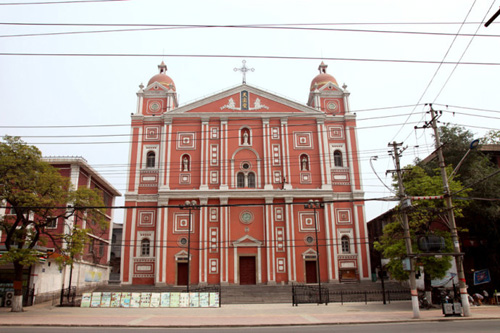 沈阳天主堂:耶稣圣心主教座堂(又称南关教堂)是典型的哥德式建筑,乃辽宁省会沈阳市的著名地标,以青砖砌筑,建筑面积1,100多平方米,双尖塔楼高40米。教堂原建于1878年,到1900年被义和团焚毁,法国传教士用清廷的赔款于1912年在原址上重建了规模宏大的教堂,成为东北地区的天主教活动中心。-The Sacred Heart of Jesus Cathedral in Shenyang, Liaoning province