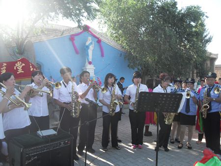 7月12日,北疆草原,生机无限,内蒙古包头教区固阳天主堂新圣母态像祝圣仪式暨本堂陈海神父晋铎25周年庆典隆重举行。来自本教区各堂口的神父、修女、教友800多人参加大礼弥撒和庆祝活动;万水泉、苏卜罗盖和东河等堂口音乐队、锣鼓队前往助兴。