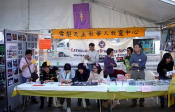 澳洲天主教华人团体己成立超过半个世纪。 今次亦有摊位展出, 向教内外人士介绍天主教华人的牧民工作。 摊位有介绍天主教的中英文单章, 光盘, 小册子免费派发, 藉此以接触团体外的中外士。 此外, 公教妇女们以她们精巧手艺, 用水晶石自制玫瑰经串及宗教小饰物出售, 深受中外友人观迎。
