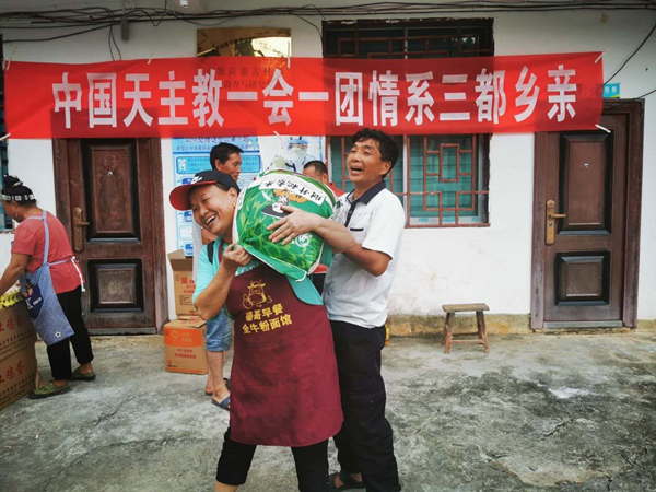 Affected by the continuous heavy rainfall, the Central Committee Department helped poverty-stricken counties, Sandu County, Guizhou Province, where serious floods occurred. The Chinese catholic clergy with Jinde Charities together distributed emergency supplies, including rice, oil and eggs, to 1043 villagers in Xinhe village of Dujiang town and Lalan village of Sanhe street, about 200 thousand in total. Due to the epidemic situation and the continuous rainstorm, materials were distributed in groups. At present, all materials have been distributed to villagers. The villagers were happy and said that they must strive to develop production and get rid of poverty as soon as possible.