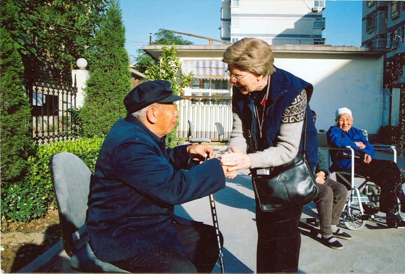2003年10月22日,安贝蒂修女访问石家庄,看望老人院的老人们。