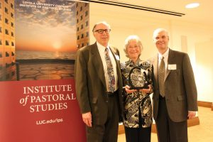The Institute of Pastoral Studies community gathered this past weekend for the 2017 Alumni and Friends Dinner, an event dedicated to raising funds for IPS scholarships.The highlight of the evening saw Evelyn and James Whitehead, beloved IPS professors, receive the Aggiornamento Award. This video tribute to the Whiteheads details the over 40-plus year relationship they’ve had with IPS; one rooted in an “emotional, spiritual, mental, and practical connection”.