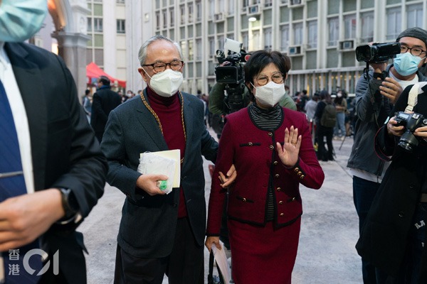 前任特首曾荫权及太太曾鲍笑薇夫妇抵达主教座堂大院