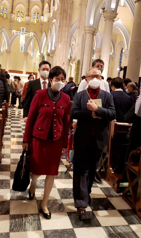 林郑月娥是在刚刚结束了湖北武汉的访问后回港的。祝圣典礼中,她和众教友一起虔诚参礼。