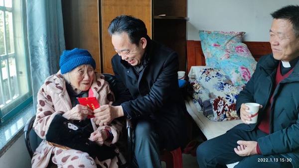 在视察中,李稣光主教还走访看望了吉安下庙村、抚州等地的老年教友,与他们亲切交流。在吉安下庙村,教区秘书长卢学利神父把自己的衣服送给了在场的一位老年的教友。李稣光主教还专程前往余江看望了103岁贞姑刘玉兰老人,体现了教会大家庭爱的精神。李主教还为吉安慕道者行圣洗圣事和坚振圣事,使教友藉领洗时所获得的圣宠更为圆满,更加坚强。