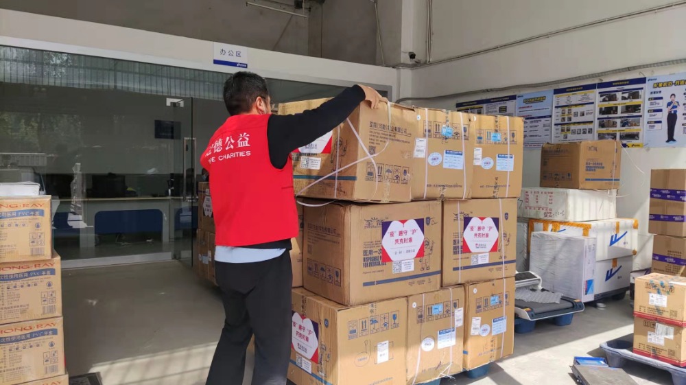 22日,首批3000只N95口罩、1500个面屏、10000只医用手套抵达石家庄。23日周六,1500套防护服运达,进德工作人员马上到货场取货,贴上标签,按照防疫要求进行了消杀。24日午夜12点,物资从石家庄机场起飞起运。