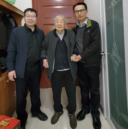 2023年3月29日(自左至右)刘振学神父、郭夫德神父及笔者在戴庄老神父的房间