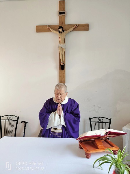 据王修士和李霞修女等介绍,郭神父几十年如一日,每天准时举祭,祈祷。即使疫情期间,除了一天因为不舒服而没主持感恩祭,这位百岁神长几乎天天做弥撒。