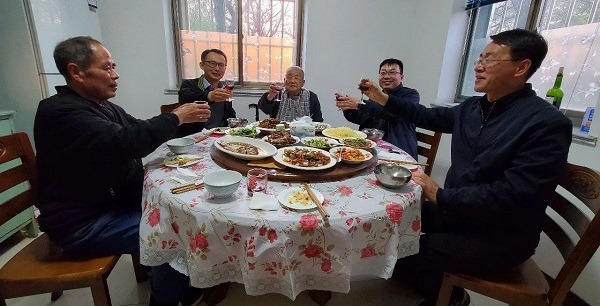 刘振学神父说:“饭后走一走,已经超过了九十九!…… 按点吃饭,按点休息…… 感谢天主赐给我们这么好的老人!赐给我们这么好的神父!”