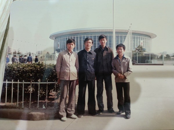 1985年5月,(自左至右)吴惠中、盛觉敏、徐麒方和许建国四位修士同学在上海体育馆。