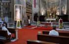 (梵蒂冈新闻网)适逢若望保禄二世教宗钦定天主慈悲主日20周年纪念,教宗方济各4月19日前往位于梵蒂冈附近的圣神堂主持弥撒。那里是慈悲救主朝圣地,供奉著一帧巨大的慈悲救主画像,以及圣傅天娜修女和圣若望保禄二世的圣髑。平时络绎不绝的朝圣地,如今却因疫情无法迎接朝圣者。为此,教宗这台弥撒没有朝圣者参加。在讲道中
