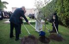 以色列和巴勒斯坦总统、教宗方济各和巴尔多禄茂一世共同植树 (梵蒂冈新闻网)教宗方济各6月5日在周三公开接见活动中问候意大利朝圣者时,提到5年前6月8日,以色列总统佩雷斯和巴勒斯坦总统阿巴斯在梵蒂冈花园举行的历史性会晤。 教宗说,“本周六6月8日,将是以色列总统和巴勒斯坦