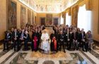 教宗与罗马宗座拉丁美洲庇护公学司铎共庆公学创建160周年 教宗方济各11月15日接见了罗马宗座拉丁美洲庇护公学的青年学生司铎,与他们共同