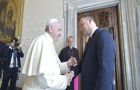 教宗与波兰总统杜达 圣若望保禄二世教宗当选40周年之际,教宗方济各10月15日上午在梵蒂冈接见了波兰共和国总统安杰伊·杜达(Andrzej Dud