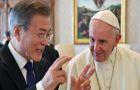 教宗方济各与文在寅总统 教宗方济各10月18日上午在梵蒂冈宗座大楼接见了韩国总统文在寅。随后,韩国总统还会见了圣座国务卿帕罗林枢机,以