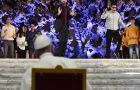 教宗观看青年表演 教宗方济各与世界主教会议与会神长们10月6日下午5点在梵蒂冈保禄六世大厅会见了约7千名青年。这次聚会是以青年为题的世