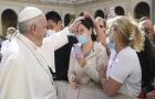 教宗方济各在公开接见活动中问候犹太人大屠杀的幸存者