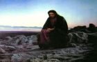 克拉姆斯柯依的《荒漠中的耶稣》 耶稣在约旦河受洗以后,被圣神领往旷野,经过四十天的祈祷、禁食之后,魔鬼就前来试探祂。而耶稣却藉着天