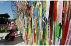 民众在朝鲜与韩国之间的隔离网挂上祈愿统一的缎带韩国首尔总教区在该国庆祝光复71周年之际,举办了「2016年和平之风」活动,邀请战乱国家的