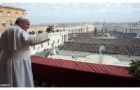 教宗方济各12月25日圣诞节正午时分在圣伯多禄大殿中央阳台颁布圣诞文告,降福罗马城和全世界(Urbi et Orbi)。亲自来到圣伯多禄广场的8
