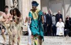 5月24日,在教宗方济各主持的公开接见活动中,有一个格外引人注目的歌舞团出现在圣伯多禄广场上。该歌舞团来自巴西东北部帕拉伊巴州圣利达城的一个贫民窟社区,在公开接见活动结束后,教宗特别接见并降福了他们。该歌舞团的编导罗德里戈·拜玛(Rodrigo Baima)也向教宗献上了一个巴西原住民妇女的蓝色头饰。这个由来自圣