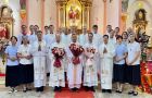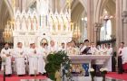 信德讯 7月3日,四川省天主教南充教区在南充市大北街主教座堂举行何文·施礼华执事晋铎典礼。典礼由南充教区陈功鳌主教主礼,省内外教区30余位神父,教区9位修女,新司铎家属和200余位教友共同见证了这一神圣时刻。弥撒典礼中,陈主教带领共祭的神父们庄重地为何文·施礼华执事覆手祝圣,为新铎傅油,使他藉着被傅油的手圣化基督子