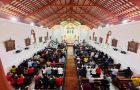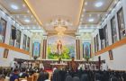 信德网讯 五月是鲜花盛开的季节,教会进入了圣母月,同时也是三原教区张白堂区隆重庆祝修缮圣堂竣工,祝圣祭台大典的日子。5月1日堂区庆祝本堂劳工主保圣若瑟瞻礼,5月2日举行祝圣祭台大典,教区各堂区、团体代表前来参礼,以隆重的圣母游行开始礼仪,教区韩英进主教主持祝圣大典,64位神父、124位修女、400多人的乐队、200