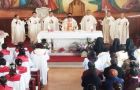 信德讯 圣周及复活节临近,因考虑到圣周礼仪多时间紧,外地神父所在堂区地处偏远,前来主教座堂往返时间仓促,因此,孟青录主教决定将圣周四祝圣圣油礼仪提前举行。3月24日,呼和浩特教区于主教座堂举行隆重而庄严的祝圣圣油礼。来自呼市周边各堂区的33位神父齐聚主教座堂,由呼市教区孟青录主教主祭,巴盟教区杜江主教