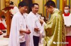 信德讯 2022年8月27日上午,浙江省天主教宁波教区在教区主教府——宁波江北耶稣圣心堂为俞立挺、刘盛、高迪聪举行了晋铎典礼,礼仪由教区主教金仰科主持,教区全体神父、修女参与。因疫情防控需要,部分新铎家属和教友参礼。新铎俞立挺,圣名若望,1986年5月7日出生于浙江舟山市普陀区六横岛。2014年6月入宁波教区浒山备修院