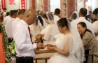 5月24日,乐山教区在夹江堂区举办了教区第二届集体婚礼,雷世银主教为29对新人举办了隆重的集体婚配圣事。29对面带笑容的新人身着婚纱礼服列队,在交响乐“婚礼进行曲”的伴随下,与主礼主教、襄礼神父一起步入圣堂。此次集体婚礼是主要是为那些由于环境的影响,结婚多年却未领受过婚配圣事的夫妻,以及近几年新领洗的教友,