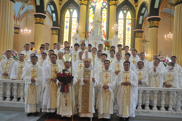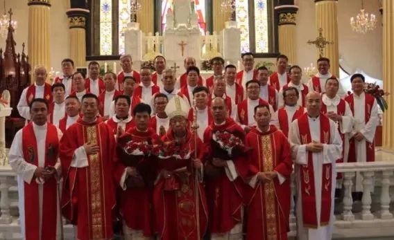 2022年6月29日,林家善主教在福州市泛船浦主教座堂祝圣两位执事为司铎,33位神父共祭参礼。