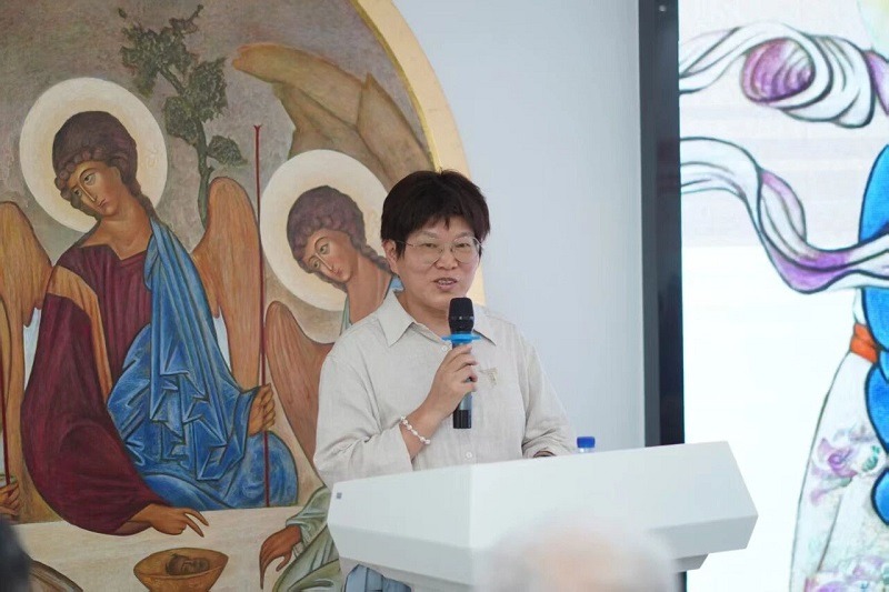 艺术评论家张小鹭教授回顾了王怀爱的创作历程,指出其作品融汇唐代景教遗韵、西方坦培拉技法与中国工笔画线描,以东方温润的艺术语言重塑圣像画的神圣气质,构筑起贯通东西、连接天人的视觉桥梁。