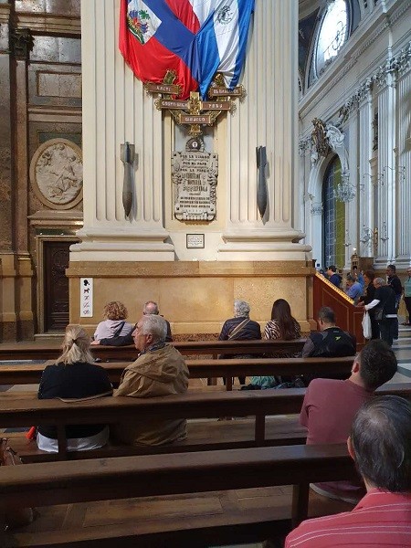 我们到达西班牙萨拉戈萨的第二天,9月28日,这里的路加神父放下他手边的工作,百忙之中抽时间陪我们去这个古老城市的主教座堂——圣柱圣母大殿朝圣,并且很专业地给我们讲解圣柱圣母的美丽传说。