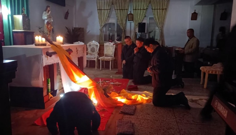 24日晚,朝拜十字圣架礼仪,神父们把自己亲手做的各种各样的十字架,代表自己想背负或者想放下的人、地、事物,以祈祷的心放在祭台前、主的十字架下。