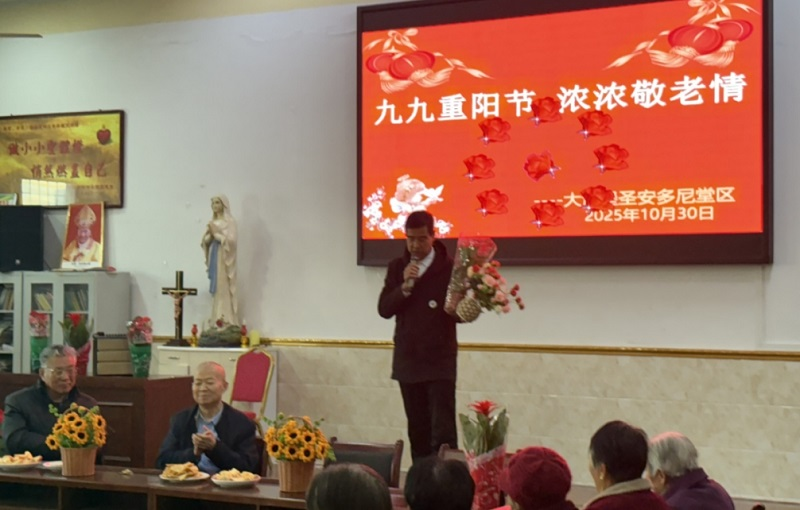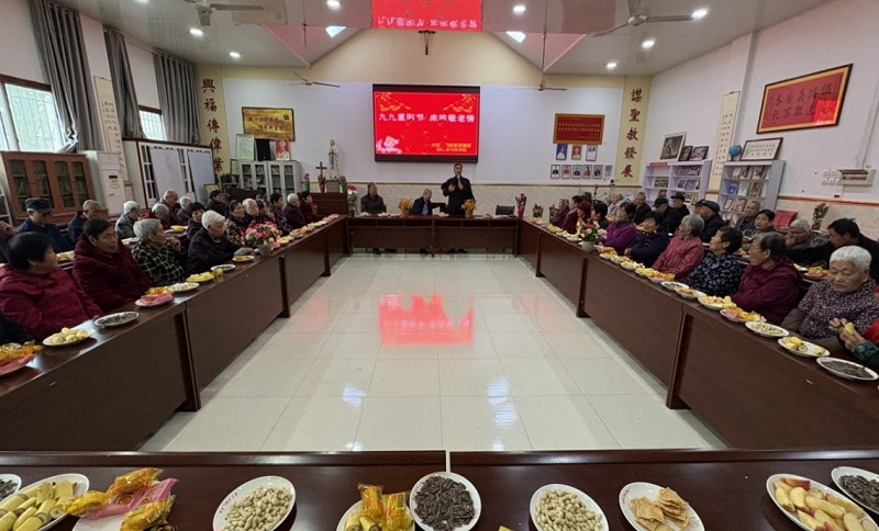 当天,堂区爱心小组成员早早为老人们准备了茶点和新鲜水果及可口的副食,本堂苏神父在致词中语重心长地说道:“人人都会老,人人来敬老,让我们一起来弘扬中华民族传统的孝亲敬老美德,发挥宗教优势,助力于社会公益,携手共建幸福和谐的友好社会。这也是天主十诫中第四条诫命所倡导和要求的核心。正如俗语所云:家有一老,犹如一宝,你们生命中的嘉言懿行不仅仅是信仰珍贵的传承,更是儿女们效法的榜样。今天也特别感谢多年来,你们在上主面前恒常的祈祷,给予了堂区精神上的支持和鼓励,九九重阳,祈愿每位老人永久康健、快乐!永久蒙受上主降福!”
