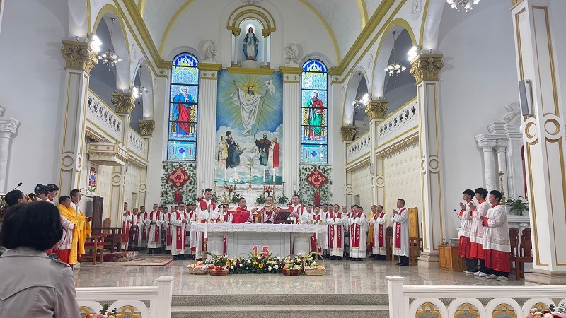 上午9时弥撒开始,李稣光主教主礼弥撒,辅理主教彭卫照偕同全体神父共祭。弥撒伊始,李主教带领大家虔诚祈祷,祈求天主赐予平安与力量,愿此次弥撒成为众人深化信仰、凝聚爱心的神圣契机。