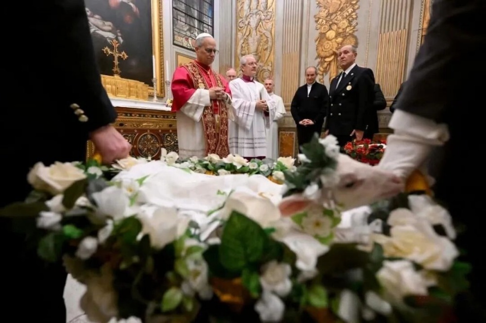 在圣依挪斯纪念日将两只白色羔羊呈现给教宗