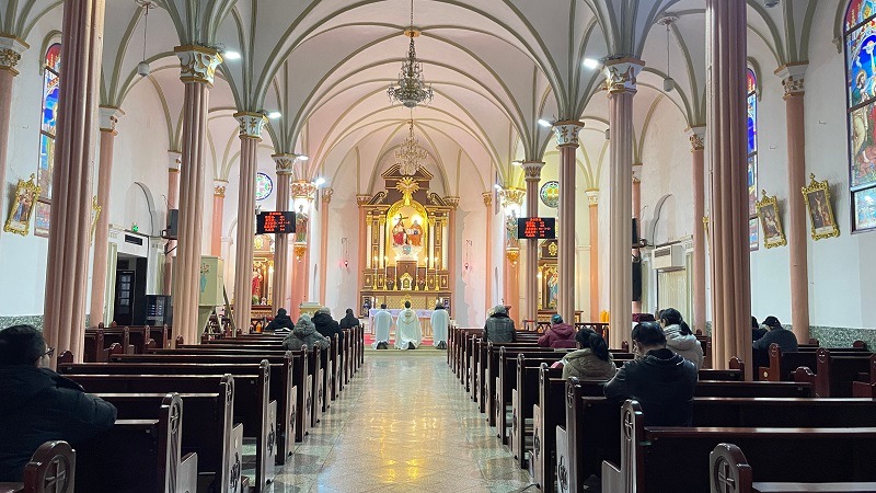 信德讯 为深化堂区教友对圣体的认知,坚固信仰根基,江西教区九江天主堂于2月5日举行朝拜圣体活动,本堂庞瑞神父亲自主持并带领教友参与。