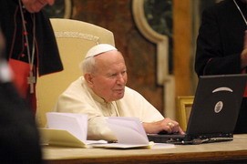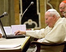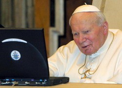 2001年11月,教宗有感于社会变迁迅速,同性恋婚姻及克隆人等众多社会议题丛生,立下创举宣布教廷全面e化。除架设教廷专属网站供民众浏览之外,他也经常收发电子邮件,利用网络与全球建立相互沟通的桥梁。(下图为2001年11月22日,教宗首次透过互联网将讯息传送给各地区主教)